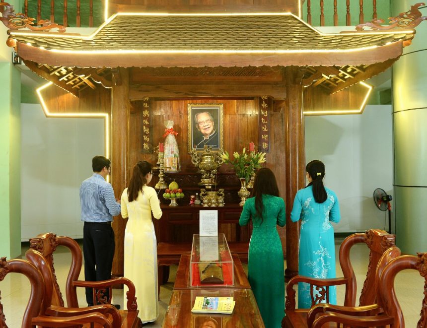 Chúng tôi đến tượng đài Hải Thượng Lãn Ông- bậc thầy y học Việt Nam để thắp nén nhang tri ân người thầy thuốc. Rồi chúng tôi về Trung tâm Linh Hoa Tuệ đàn để thắp nén nhang trước Bàn thờ Đức Phật và các chư vị Bồ Tát, ghé thăm chiếc đại Hồng chung để được nghe thật gần âm thanh trầm bổng phát ra từ chiếc chuông đồng lớn này và cảm nhận được sự thanh tịnh, bình yên ở chốn vĩnh hằng này. Viếng thăm gian thờ GS nhạc sĩ Trần Văn Khê- người thầy đã dày công truyền bá âm nhạc cổ truyền Việt Nam ra thế giới.